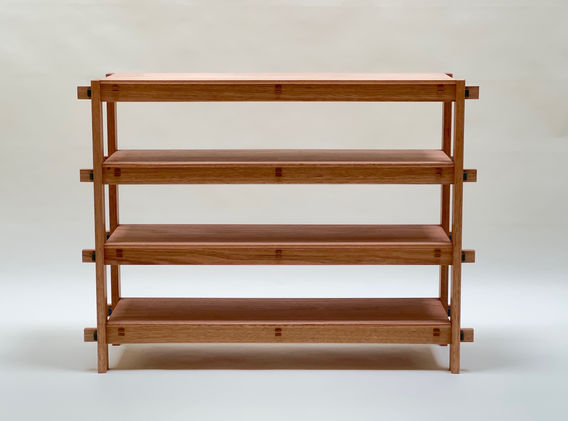 The original brief for this shelving unit was to hold our shop assistant's Lego collection. Something happened during design and it ended up being a shelf you could line up your Oxford English Dictionary set on. As a bonus, you can take it apart to bring with you, along with the OED, to seek shelter during the coming AI apocolypse.